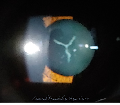 This is a congenital lens opacity that occurs at the location of closure of the fetal lenticular nucleus. These are rarely visually significant. The Y sutures demarcate the boundaries between the lens cortex, which is peripheral to the Y sutures, and the lens nucleus, which is within and includes the Y sutures. The anterior Y suture is oriented upright, and the posterior Y suture is inverted.