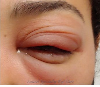 Preseptal cellulitis is an infection of the eyelid typically caused by bacteria. The main symptoms are redness and swelling pain of the eyelid.
